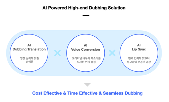 아래는 국내 AI 더빙 업체인 Hudson AI의 더빙솔루션을 소개하는 그림이다.